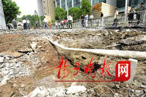 現(xiàn)場(chǎng)有市民稱,當(dāng)時(shí)塌陷有“22米多深”。而記者看到,塌方區(qū)域近30平方米,下陷處深的有3米多,淺的1米多,一臺(tái)挖掘機(jī)正將坍塌的浮土挖走清除。在塌陷處,一個(gè)1米見方的窟窿里,有大量的清水滲出,形成一方小塘。正在搶修的市政工作人員說,塌方的馬路下面埋著一根直徑1.2米的主供水管,另有一根污水管,還有一根10千伏的電纜,“幸虧這些市政設(shè)施沒受損,不然后果相當(dāng)嚴(yán)重!”目擊者介紹,當(dāng)時(shí)路上車輛較少,肇事大貨車載重有26噸,經(jīng)過此地時(shí),突然后輪陷了進(jìn)去,結(jié)果越陷越深,緊接著這里就塌方了。施工人員稱,“二次塌方”可能不大。 范曉林 梅建明
