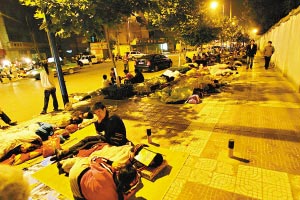 “這幾天還少了些,最恐怖的時(shí)候,市區(qū)二環(huán)周圍全部睡滿了人!蔽靼补こ檀髮W(xué)的一學(xué)生告訴記者,“那段時(shí)間,同學(xué)們都把床單鋪到學(xué)校操場上,一個(gè)大操場一下就睡滿了。我還有個(gè)同學(xué)為了躲避地震,沒拿到畢業(yè)證就‘逃’到北京避災(zāi)去了。”