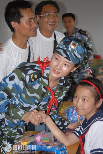 海軍少將宋祖英赴四川綿竹和小學(xué)生過(guò)兒童節(jié)(圖)(2)