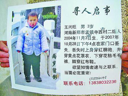 家人以為孩子走失,到處張貼尋人啟事。陳曉東 圖