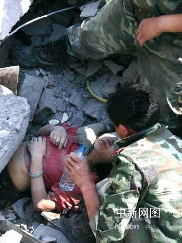 到下午5點鐘左右的時候,搜救官兵已經(jīng)能夠看到袁藝的頭發(fā)了,這讓所有的人不覺精神為之一振。為了使袁藝能夠保持清醒,官兵們不時的陪說話。交談中,孝順的袁藝一直在打聽父母和家人的情況,“他們肯定想不到我還活著”,袁藝話中透露著對劫后余生的無限欣喜與感動?吹搅斯俦鴤兙仍男量,堅強的袁藝反倒不住的安慰不敢加快挖掘速度生怕碰到她傷口的官兵們:“你們加油,我也加油,我不怕疼......”