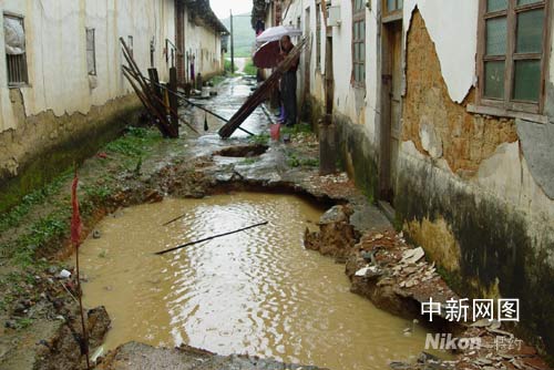 據(jù)村民反映,地面塌陷是從6月9日下午3點(diǎn)多鐘開(kāi)始的,在村民劉細(xì)梅和劉河柱的家門前地面先出現(xiàn)一個(gè)小坑,后來(lái)逐漸變大變深。由于地面塌陷引起涉及5戶村民共8間民房受損,墻壁出現(xiàn)裂縫,大的裂縫約5厘米寬,一些房屋門窗嚴(yán)重變型,墻壁表層脫落,房門無(wú)法打開(kāi),有的房間村民用東西敲擊地板時(shí),地面顫動(dòng),有地下空洞的感覺(jué)。