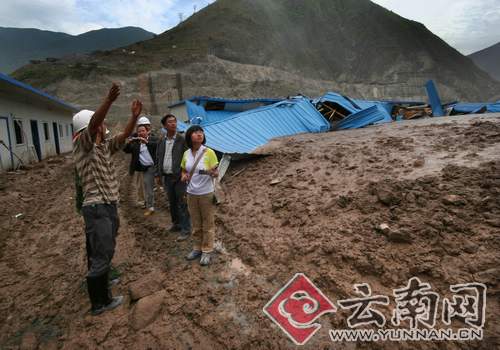 消息最先傳到了設(shè)在離楊翠英家約100米處的魯?shù)乩娬竟こ袒I備處。10點(diǎn)40分,云南華電魯?shù)乩娪邢薰靖笨偨?jīng)理侯建剛接到電話(huà):魯?shù)乩灏l(fā)生泥石流,設(shè)在那里的工棚出事了。他立刻帶人往工地趕,揪著一顆心:現(xiàn)場(chǎng)究竟怎么樣?