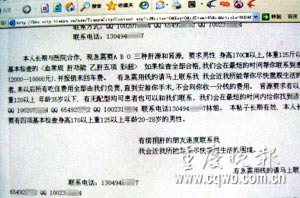 近日,天涯網(wǎng)上一則求捐肝源的帖子引來眾多網(wǎng)友的關(guān)注,但回帖率最高的不是網(wǎng)友們的評論,而是一則“有償捐獻(xiàn)”器官的小廣告。昨日,重慶志同律師事務(wù)所陳昊律師警告稱,“有償捐獻(xiàn)”器官是一種違法行為。