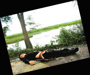 一聽是警察,3名劫匪知道大事不妙,持槍的兩名劫匪慌忙跳下路旁的水坑欲逃跑,駕駛摩托車的那名劫匪企圖駕車逃跑,由于緊張,車頭一扭也撞下水坑中。持槍的兩名劫匪跳下水坑后,其中一人大叫:“干掉他們(警察)!彪S即便轉(zhuǎn)身調(diào)轉(zhuǎn)槍口向著迅速圍捕過來的民警,企圖向民警開槍。就在這千鈞一發(fā)之際,民警果斷扣動了扳機。