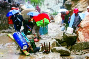 昨日,北川陰雨綿綿,從5月20日起,這里已經封城一個月。6月20日開始,幸存的北川居民被允許進城尋找自家財產,從城里搬出的物品要一一登記。據統(tǒng)計,昨日有近萬人進入北川縣城參與“大搬家”。