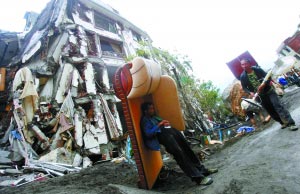 “背一簍30塊錢,冰箱、彩電200元!北贝ǹh城入口處,數十背著竹簍的居民在招攬“生意”。他們大部分來自北川附近的擂鼓鎮(zhèn)。家住擂鼓鎮(zhèn)的趙晚秋,哥哥一家3口都在北川遇難,家里已變成廢墟。20日,趙晚秋開始給回北川取東西的居民幫忙,每趟人家都會給二三十塊錢,有人不給,她也不要!岸际巧阑茧y過來的,真的不能太計較!彼f。