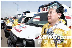 副總指揮丁健,執(zhí)行總指揮、市公安局副局長(zhǎng)吳金彪的一道道指令第一時(shí)間從總指揮部發(fā)出,《西安市處置生物化學(xué)恐怖襲擊事件預(yù)案》迅速啟動(dòng)。公安、武警、消防等各警種全副武裝趕赴現(xiàn)場(chǎng),開展?fàn)I救行動(dòng),市政、衛(wèi)生、電力、環(huán)保、旅游等相關(guān)部門緊急拉動(dòng),趕赴現(xiàn)場(chǎng)展開工作,全市共出動(dòng)人員500余人、各類車輛80余輛。關(guān)鍵時(shí)刻,我市公安新裝備——警用直升飛機(jī)首次警務(wù)升空,成功地在第一時(shí)間將特警送達(dá)“案發(fā)現(xiàn)場(chǎng)”,為搶救工作奪得了寶貴時(shí)間,圓滿完成了任務(wù)。