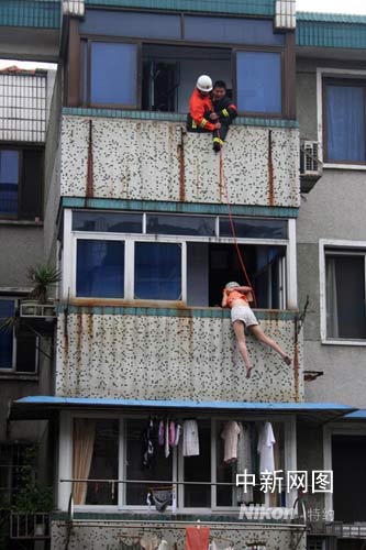 這可不是哪部武俠小說里的場(chǎng)景,也不是在拍攝動(dòng)作片,而是6月24日中午11時(shí)浙江省越城區(qū)消防大隊(duì)官兵救下一名輕生女子的真實(shí)寫照。