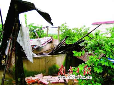 前日下午2時(shí)35分許,受熱帶風(fēng)暴“風(fēng)神”的外圍環(huán)流影響,高明區(qū)明城鎮(zhèn)明西村委會(huì)仁坑村遭受了一股龍卷風(fēng)的襲擊,導(dǎo)致40畝水稻倒伏,20間房屋遭到破壞,經(jīng)濟(jì)損失初步估計(jì)達(dá)近15萬元。據(jù)目擊的村民估計(jì),該股龍卷風(fēng)直徑約達(dá)20米,經(jīng)過該村的路線距離達(dá)到600多米。昨日,據(jù)該鎮(zhèn)通報(bào),這次龍卷風(fēng)襲擊沒有造成人員傷亡,各項(xiàng)自救工作已全面展開。