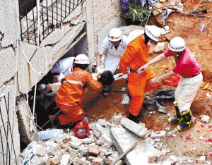 記者趕到,救援人員正在對被困現(xiàn)場的一名小伙子進行緊急搶救。由于該小伙子大半個身子均被埋在泥土下,而且埋得很深,所以造成了一定的救援難度。一位在現(xiàn)場進行搶救的醫(yī)生告訴記者,該小伙子頭部沒有被埋進去,一直都有生命特征,但由于挖掘的難度大,為保住他的性命,最后的辦法只能是通過截下肢的辦法救出他。