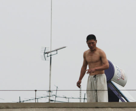 因后老伴攜售房款消失,為讓其現(xiàn)身,昨日13時58分許,5旬老漢在后老伴兒子居住的樓頂上呆了4個多小時后,經(jīng)媒體記者勸導(dǎo)才走下來。