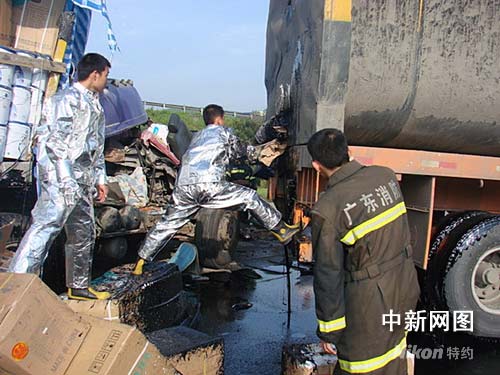 中新網(wǎng)韶關(guān)7月3日電(馮昶 李凌 鄭忠輝 鄭澤煌) 7月2日,京珠高速公路廣東韶關(guān)曲江服務(wù)區(qū)內(nèi)發(fā)生一起交通意外,導(dǎo)致裝有瀝青的槽罐車發(fā)生泄漏。當(dāng)?shù)叵、交警、安監(jiān)、環(huán)保、醫(yī)護等部門接報后迅速趕到現(xiàn)場處置。
