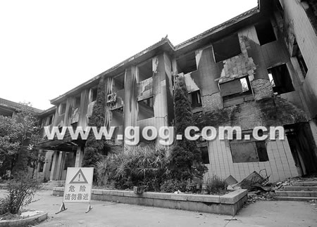 在甕安“6·28”打砸搶燒事件中,該縣公安局大樓、縣政府大樓、縣民政大樓、縣財政大樓和縣委大樓損毀嚴(yán)重。昨日,該縣已開始全面修復(fù)縣政府和縣公安局大樓;而縣委大樓因為損毀嚴(yán)重?zé)o法修復(fù),今日將全部拆除。