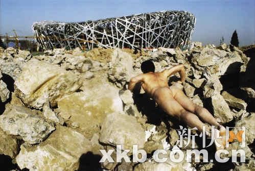 區(qū)志航用裸體俯臥撐與鳥巢"對話"。
