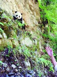 近日,馬先生一行5人來到太白縣考察生態(tài)農(nóng)業(yè)項(xiàng)目,7月5日上午,他們從太白縣城出發(fā),前往黃柏塬鄉(xiāng)。上午10時(shí)30分許,車駛出30多公里時(shí),馬先生看到路邊有群人圍著什么東西,順著眾人的視線看到,離地面大約4-5米的崖壁上竟有一只大熊貓。一行人喜出望外,他們從來沒有想過自己還有緣看到野生大熊貓,于是放下手頭的工作加入到守護(hù)大熊貓的行列中。
