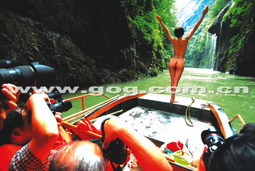 這幾天,由中國藝術(shù)攝影學(xué)會、貴州省攝影家協(xié)會聯(lián)合主辦的貴州南江大峽谷全國攝影挑戰(zhàn)賽正在舉行。來自全國各地的攝影大師、愛好者云集南江大峽谷,在游人如云的風(fēng)景區(qū)內(nèi)進行被人視為“另類”的人體攝影。