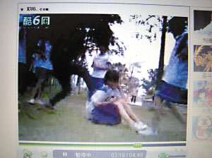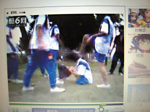 7月11日,酷6網上出現(xiàn)了一個肇慶某中學的女學生被打的過程視頻,視頻長達4分49秒,重復兩次播放。