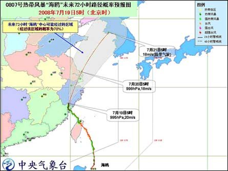 中新網(wǎng)7月19日電 中央氣象臺7月19日06時發(fā)布臺風(fēng)消息:今年第7號強(qiáng)熱帶風(fēng)暴“海鷗”于昨天晚上在福建省霞浦縣境內(nèi)減弱為熱帶風(fēng)暴,今天早晨5時其中心位于浙江省泰順縣境內(nèi),就是北緯27.6度、東經(jīng)119.8度,最大風(fēng)力有8級(20米/秒)。預(yù)計,風(fēng)暴中心將以每小時15-20公里的速度向北偏東方向移動,強(qiáng)度繼續(xù)減弱。