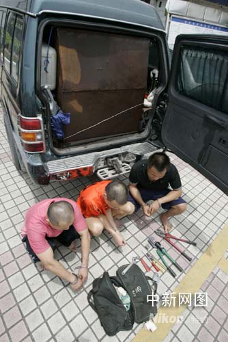 警方現(xiàn)場(chǎng)繳獲吉普車內(nèi)的液壓剪、扳手等作案工具一批。經(jīng)檢查,被盜大貨車的油箱內(nèi)約有70升柴油已被吸入吉普車的油罐。根據(jù)估計(jì),吉普車內(nèi)的油罐容量有1噸左右。