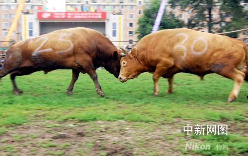 中新網(wǎng)延邊7月20日電 (秦俑)7月20日,吉林省延邊朝鮮族自治州“圖們江斗牛大賽”在圖們市舉行。共有來自全州8個(gè)縣市的200多頭“延邊黃牛”參加了角逐。