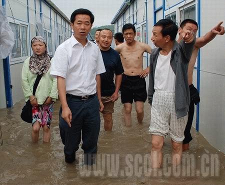災(zāi)情發(fā)生后,江油市委書記、人大主任易林,市委副書記、市長宋開慧,政協(xié)主席范來山等四大班子領(lǐng)導(dǎo)立即奔赴現(xiàn)場指導(dǎo)搶險(xiǎn)工作。據(jù)了解,這次強(qiáng)降雨主要是受高原低渦東移和西南暖濕氣流共同影響造成的。由于雨勢太猛,降水集中,各安置小區(qū)內(nèi)排水系統(tǒng)不堪重負(fù)。記者在李白大道以西的安置小區(qū)京江花園北區(qū)、南區(qū)內(nèi)看到,齊膝深的洪水漫進(jìn)了活動(dòng)板房內(nèi),安置群眾室內(nèi)的沙發(fā)、床、桌子等家俱漂浮在水面,電視機(jī)、洗衣機(jī)、電冰箱、電風(fēng)扇、糧食等都被泡壞。