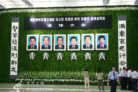 上海閘北襲警案中六位犧牲民警追悼大會將于今天10時在龍華殯儀館舉行。