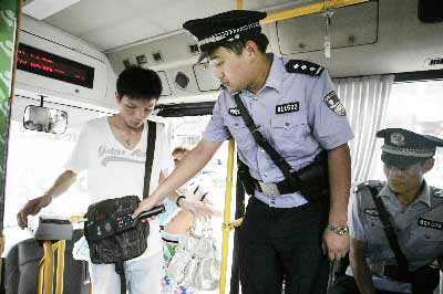 廣泛發(fā)動(dòng)群眾積極舉報(bào)涉恐涉黑涉惡犯罪線索,嚴(yán)厲打擊涉恐涉黑涉惡犯罪是長沙公安機(jī)關(guān)根據(jù)面臨的新形勢、新任務(wù)、新要求實(shí)施的一項(xiàng)重大舉措,大量事實(shí)證明,犯罪分子藏匿在群眾之中。從昨日起,長沙公安城管警察攜帶包括多功能腰帶、對講機(jī)、催淚噴射器、手銬、執(zhí)勤包、伸縮性警棍六件套裝備和危爆物品檢測儀登上公交車,維護(hù)公交線路和各個(gè)站點(diǎn)的安全秩序,這是長沙警方首次在公交車上進(jìn)行安全防控。