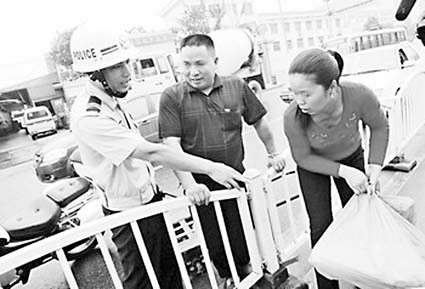交警正制止行人翻越護(hù)欄。陳飛攝