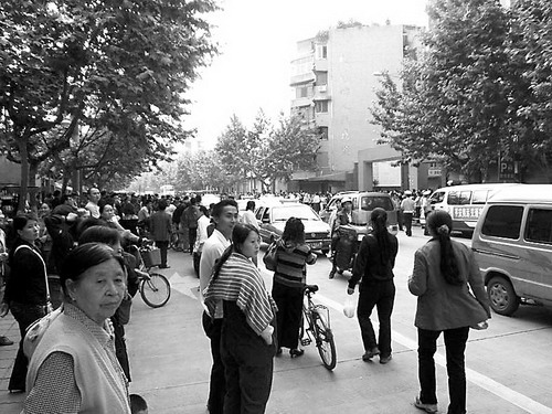 百姓圍觀,警方在醫(yī)院周圍拉起警戒線。杜先福攝