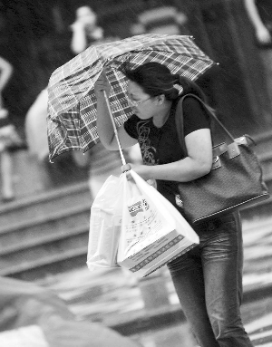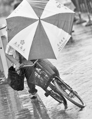 鳳凰撲來(lái),狂風(fēng)大作,吹翻了行人的傘 快報(bào)記者 施向輝 顧煒