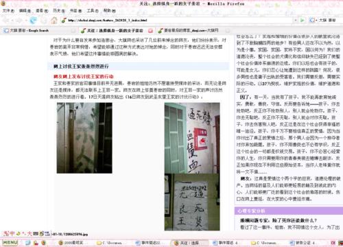 此后,一場規(guī)模龐大的“人肉搜索”在網(wǎng)絡(luò)上展開。王菲和所謂“第三者”的照片、工作單位和地址、家庭人員狀況、個人電話號碼等信息被不同的網(wǎng)友不斷詳細(xì)地披露在網(wǎng)絡(luò)上。
