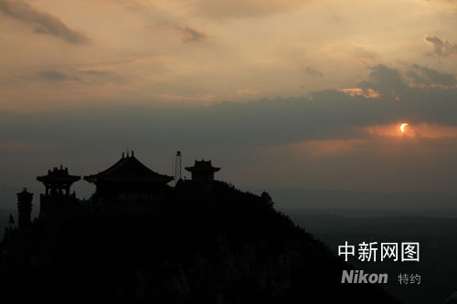 當(dāng)天,一路記者當(dāng)時在晉城市玨山風(fēng)景區(qū),當(dāng)時山上游客不多,在山頂記者拍下了這次全日食的變化,遺憾的是在山西省看到的是全日食的偏食過程。另一路記者卻在翼城縣公安局家屬院12層樓頂拍攝到這次百年不遇的奇觀。