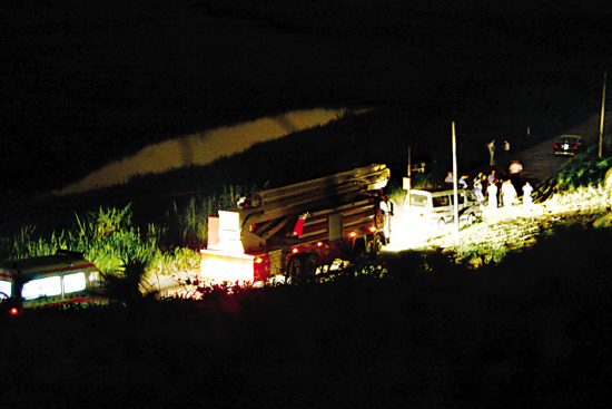 記者接報(bào)趕赴時(shí),發(fā)現(xiàn)警方在距現(xiàn)場(chǎng)一公里處便已開(kāi)始設(shè)卡封鎖,禁止無(wú)關(guān)人員進(jìn)入(見(jiàn)上圖,陳文筆、張雄高攝)。209倉(cāng)庫(kù)內(nèi)警燈閃爍,大批消防車(chē)出動(dòng)。由于是化學(xué)品失火,不能用水撲救,因此不斷有泥頭車(chē)從外面運(yùn)來(lái)干沙滅火。昨晚11時(shí)許還增加了一輛挖掘機(jī)進(jìn)場(chǎng)。待情況穩(wěn)定后,不斷有此前從倉(cāng)庫(kù)疏散出來(lái)的工人經(jīng)同意后重新進(jìn)入庫(kù)區(qū)。
