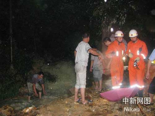 7時20分許,救援官兵到達現場,此時現場情況已是狼狽不堪,不少群眾還在山體滑坡發(fā)生地點的山腳處議論紛紛,通往山上的道路已經變成小溪,洪水夾著淤泥、石塊洶涌的往下沖,救援官兵在詢問中得知,在山邊有一間簡易棚被泥石流沖垮,屋內沒有人員居住,但山體滑坡隨時都有可能再次發(fā)生。