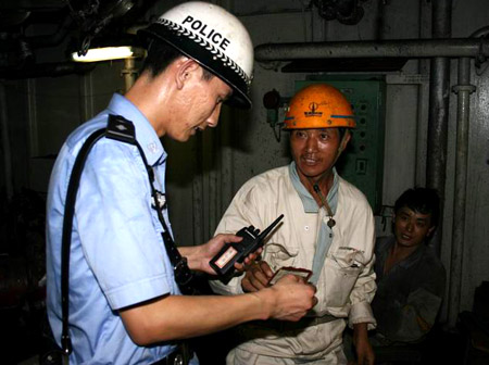 為進(jìn)一步鍛煉、檢驗(yàn)應(yīng)急反應(yīng)和協(xié)同作戰(zhàn)能力,消除對(duì)外開放口岸安全隱患,8月9日、10日兩天,(上海)金山邊檢站與市局水上公安局在龍吳路沿江部分對(duì)外開放碼頭舉行了代號(hào)為“江盾”的聯(lián)合演練,通過(guò)實(shí)戰(zhàn)提高雙方應(yīng)對(duì)口岸突發(fā)事件的能力,為奧運(yùn)盛會(huì)的平安舉行保駕護(hù)航。演練階段,由雙方分別對(duì)碼頭安保工作、登輪管理工作及外輪自管工作展開專項(xiàng)檢查,并向外輪船員、碼頭工作人員宣傳雙方在奧運(yùn)會(huì)舉行期間將采取的服務(wù)、管理舉措。值得一提的是,演練過(guò)程中,多艘駁船企圖趁夜色非法搭靠外輪從事不法交易,在雙方的密切配合下,成功制止了其不法行為。(新華網(wǎng)上海頻道 記者陳飛 通訊員唐杰攝影報(bào)道)