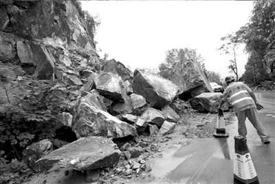 昨天凌晨,(北京市)門頭溝區(qū)109國道一路段山體發(fā)生滑坡,導(dǎo)致該路段階段性封閉數(shù)小時。直到昨天下午,該路段才被完全搶通。