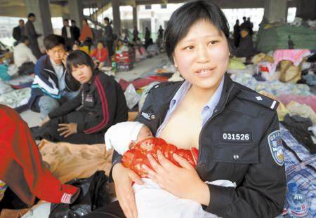 記者:地震時(shí),你的孩子才6個(gè)月,當(dāng)時(shí)被迫中斷了喂奶,有沒有覺得對(duì)不起孩子?