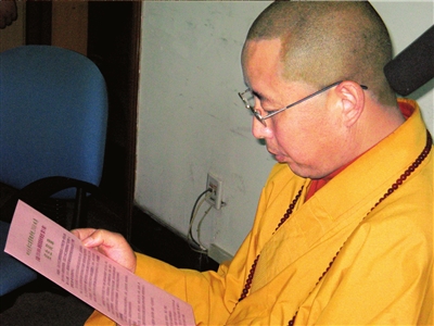 填寫好報(bào)名表,釋宏永的手機(jī)響起,僧袍里,他熟練地摸出一部智能手機(jī)——事實(shí)上,他還有聯(lián)想筆記本電腦、開著越野車、印有名片,這些都“很現(xiàn)代”。在他看來,寺廟不能脫離現(xiàn)代社會(huì)而存在。這次汶川大地震期間,釋宏永參加救援隊(duì)伍,帶路營救出45名群眾,并一直堅(jiān)持在災(zāi)區(qū)一線抗震救災(zāi),個(gè)人化緣為回龍溝災(zāi)區(qū)買回1萬多斤大米賑災(zāi),在當(dāng)?shù)乇粋鳛榧言挕?