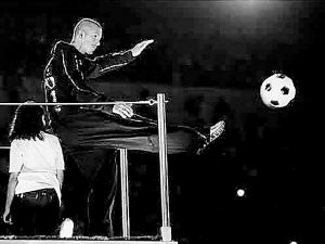 這只黑白相間的足球以一個(gè)漂亮的“貝氏弧線”飛向遠(yuǎn)處,現(xiàn)場(chǎng)一名年輕的志愿者飛身上前,穩(wěn)穩(wěn)地把足球攬入懷中。懷抱足球,他那燦爛的笑容感染了現(xiàn)場(chǎng)和電視機(jī)前的億萬(wàn)觀眾,人們情不自禁地為這位快樂(lè)的陽(yáng)光男孩、為偉大的奧林匹克精神歡呼。