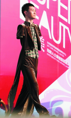 昨天,40名普通殘障人士在國(guó)家?jiàn)W林匹克公園祥云劇場(chǎng)上演了一場(chǎng)“時(shí)裝秀”。這是國(guó)內(nèi)首次為殘障人士舉辦的康健服裝展演。
