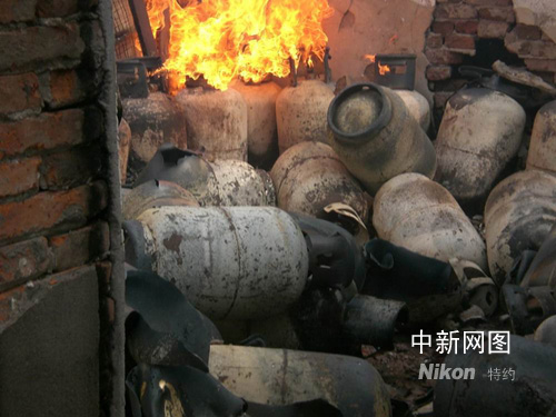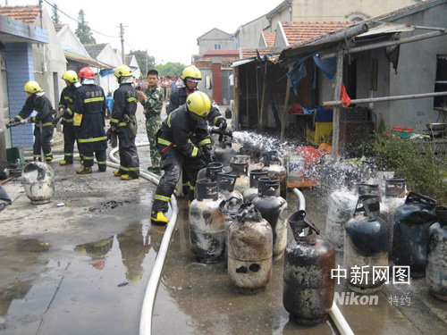 中新網(wǎng)寧波9月22日電(何蔣勇 帥帥)今天上午9點32分,位于浙江鎮(zhèn)海區(qū)一村莊發(fā)生了一起煤氣瓶代充點爆炸事件,造成了一人受傷。該煤氣瓶代充點內(nèi)有近60個左右的煤氣瓶,發(fā)生火災后就連續(xù)爆炸,一連串的爆炸了30個左右。房子的房頂都已經(jīng)坍塌,墻壁也被炸裂,并排房子的玻璃全部被震碎了,就連隔著一條馬路的小店都遭了殃,小店內(nèi)的東西都被烤化,水果也被烤熟了。