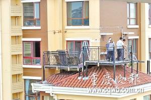 小區(qū)物管公司技術(shù)部人員也在現(xiàn)場(chǎng)幫忙,他們說(shuō),由于“吊腳樓”地處32樓高空,又懸在一尖角屋頂上,拆除起來(lái)難度較大,“預(yù)計(jì)還要一天才能拆完!