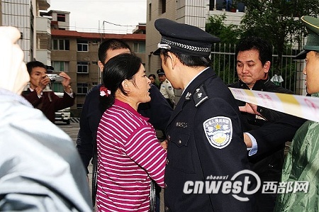 27日上午,周正龍涉嫌詐騙及非法持有彈藥案在陜西旬陽開審,周正龍妻子羅大翠未獲準(zhǔn)進入法庭旁聽,對此羅大翠表示不解,并試圖強行闖過警戒線進入法庭。旬陽法院稍早前駁回了羅大翠的旁聽請求,法院的相關(guān)人員解釋說,周正龍妻子羅大翠、兒子周松做為本案證人,按照相關(guān)規(guī)定是不能旁聽庭審的。(記者錢海峰 陳武)