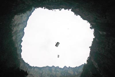 奉節(jié)天坑直徑626米、深度662米,是世界上發(fā)現(xiàn)的深度與容積最大的巖溶漏斗,被譽(yù)為天下第一坑,高空王子阿迪力曾在奉節(jié)天坑走過(guò)600多米的鋼絲,創(chuàng)造了吉尼斯世界紀(jì)錄。此次奉節(jié)跳傘節(jié)就借用了阿迪力曾走過(guò)的鋼絲,運(yùn)動(dòng)員從鋼絲中間跳傘,創(chuàng)造國(guó)內(nèi)低空跳傘紀(jì)錄。(紀(jì)文伶賀世瀛)