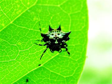 從照片上看,其堅(jiān)硬的腹部上有六條棘刺,突出的刺狀與身上的斑紋配搭,形成一副惟妙惟肖的臉譜,且似乎在笑呢!斑@是我在考察成都地區(qū)的蜘蛛時(shí)偶然發(fā)現(xiàn)的!”趙力說,發(fā)現(xiàn)它的地點(diǎn)是在武侯祠的漢昭烈廟。