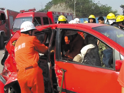 上午10:30左右,巴南區(qū)魚洞消防中隊(duì)接到報(bào)警,迅速趕往現(xiàn)場(chǎng)。發(fā)生事故的“長安奔奔”右側(cè)車身嚴(yán)重變形,受輕傷的駕駛員已經(jīng)自行跑出車外,3名乘客被困車上。消防官兵立即破拆車窗救人,2名傷者被送往醫(yī)院接受治療。目前,事故原因正在進(jìn)一步調(diào)查中。 (重慶商報(bào))