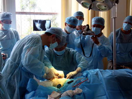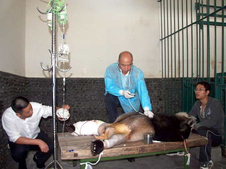 基地專家告訴四川新聞網(wǎng)記者,骨科手術(shù)要求很嚴(yán),在所有手術(shù)中僅次于心臟手術(shù),稍有不慎就可能造成感染引發(fā)骨髓炎,并有截肢的危險(xiǎn)。為確保手術(shù)萬無一失,基地獸醫(yī)與成都軍區(qū)八一骨科醫(yī)院的專家反復(fù)討論手術(shù)方案,為減少運(yùn)輸和增加感染,專家一致決定將手術(shù)地點(diǎn)確定在基地的新獸醫(yī)院。