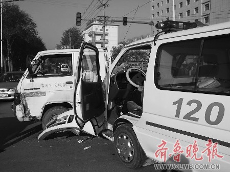 10月7日上午8點10分,一輛從濱州黃河三路由東向西直行的120急救車行駛至黃河三路與渤海五路交叉口時,與一輛由北向南正常行駛的小貨車相撞,120車車頭底部當場被撞了下來,所幸車內(nèi)人員沒有受傷。