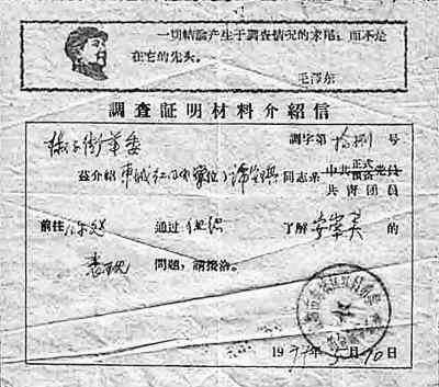 “那個(gè)年代的中國人,沒有介紹信寸步難行。1971年,黃梅縣文化館有機(jī)會(huì)去武漢參加文藝演出放電影,同事小袁老家在武漢,我們就讓他拿著介紹信帶著膠片去了。沒想到小袁把介紹信揣在兜里,洗衣服時(shí)給洗壞了。正巧遇上工人糾察隊(duì),小袁拿不出介紹信,被當(dāng)作‘黑戶’給糾察去,單位領(lǐng)導(dǎo)趕去才把他接出來!